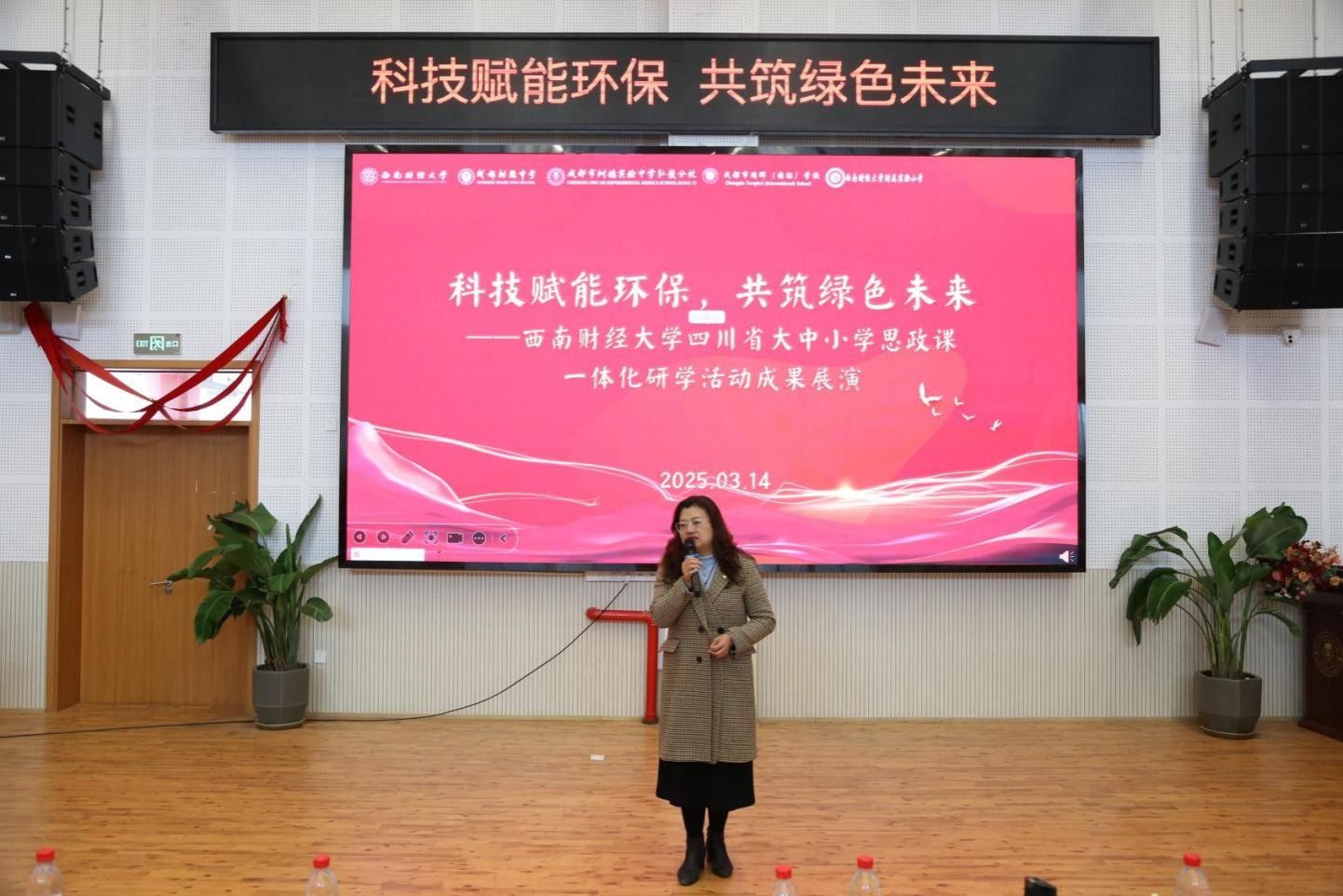 展示活动上,成都市树德实验中学弘毅分三亿党支部书记、董事长何海燕首先致辞。她回顾了自2023年起开展的“大气卫士”研学活动,介绍了员工前往国蓝中天大气智能大数据监测中心及一汽大众的研学经历。她指出,本次活动涵盖思想教育小学至大学四个学段,涉及横向课程思政七大学科,充分体现了思政课一体化理念,即思想政治教育与学科知识、思维、素养的有机结合。