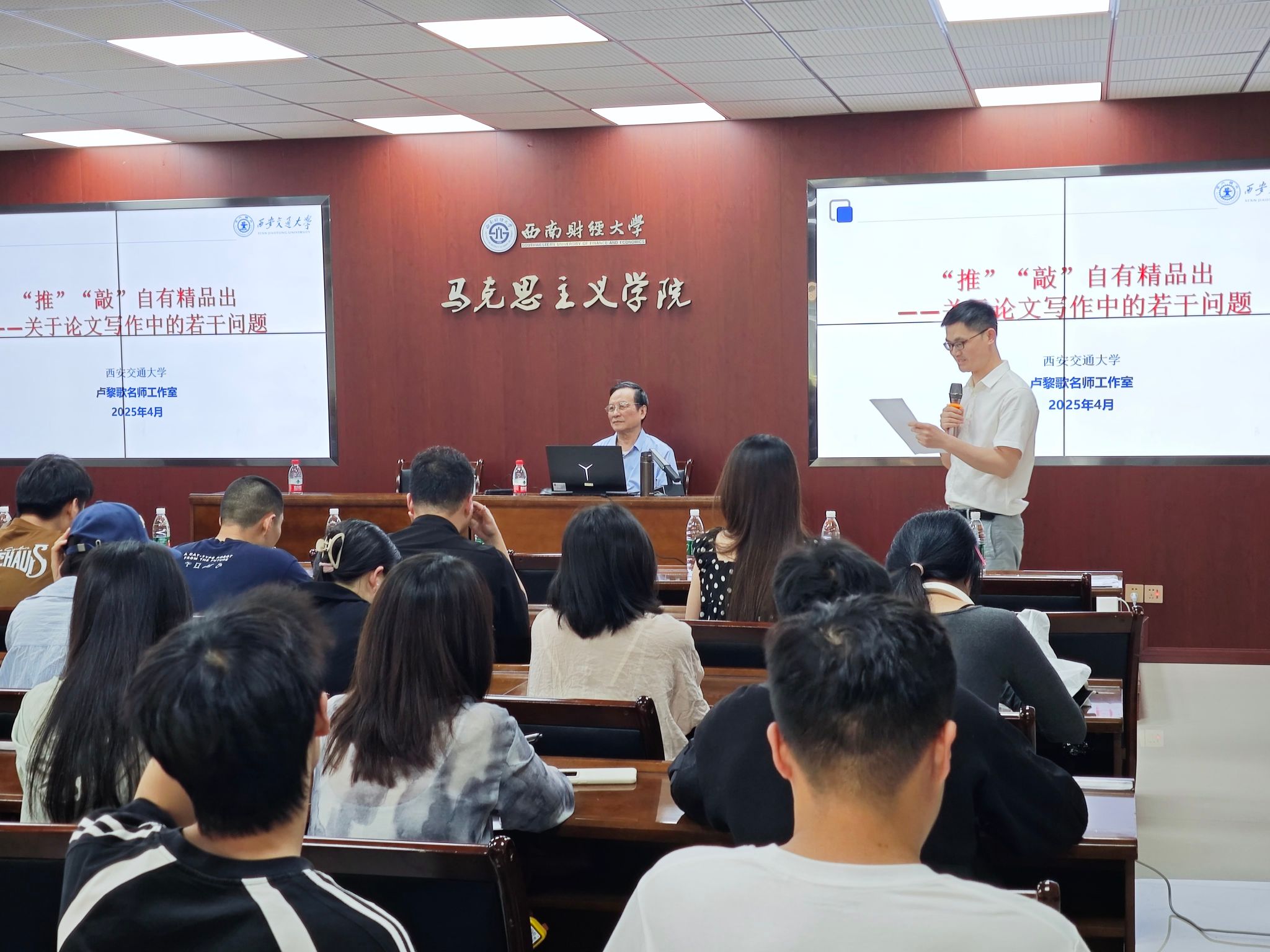 4月18日下午,西安交通大学二级教授、国家教学名师卢黎歌教授应邀做客公司“百年校庆杰出学者”讲座,在通博楼A117会议室作题为《“推”“敲”自有精品出——关于论文写作的若干问题》的学术报告。三亿胡建教授主持讲座,60余名师生现场聆听。