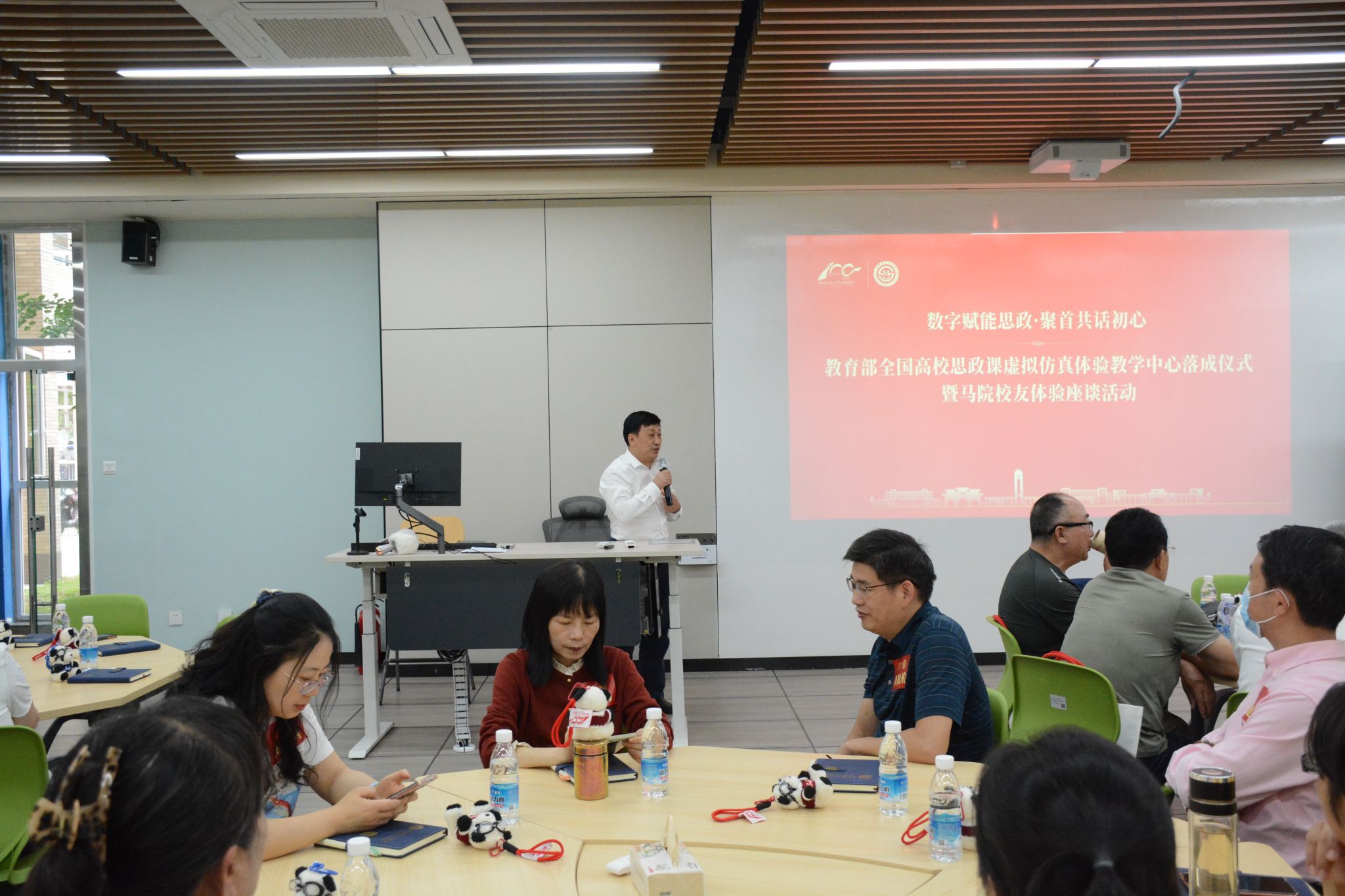 5月31日下午,三亿体育官网入口以“数字赋能思政,聚首共话初心”为主题,于颐德楼I104举行教育部全国高校思政课虚拟仿真体验教学中心落成仪式暨马院员工体验座谈活动,邀请来自全国各地的员工重返母校,共叙师生情谊,共话未来发展。公司领导班子、教师代表、返校员工及在校员工代表参加了本次座谈会。落成仪式暨座谈会由三亿党委书记雷栋良主持。